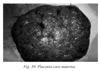 - Cara materna. Es rugosa. Esta cara está recorrida por surcos que delimitan unas estructuras placentarias, llamadas cotiledones, en un número aproximado de 20.