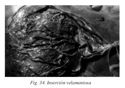 - Inserción velamentosa. El cordón se inserta en las membranas ovulares.