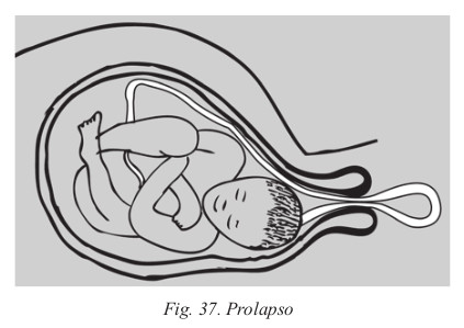 - Prolapso. El cordón sobrepasa la presentación en el momento del parto y la bolsa está rota.
