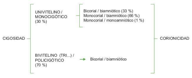 Podemos dividir los embarazos múltiple atendiendo a su cigosidad (número de ovocitos fecundados) o de su corionicidad (número de placentas y membranas).