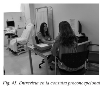 “Entrevista programada entre una mujer (o una mujer y su pareja) con el equipo de salud, previo al embarazo, con el objetivo de corregir, eliminar o disminuir factores o conductas de riesgo reproductivo, y/o tratar enfermedades que puedan alterar la evolución normal de un futuro embarazo” (Fig. 45).