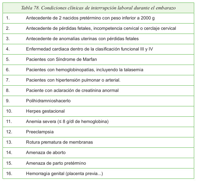 - Ley orgánica 3/2007, de 22 de marzo, para la igualdad efectiva de hombres y mujeres para favorecer la conciliación de la vida personal, familiar y laboral. Existen diversas situaciones en las que se debe de considerar la interrupción laboral durante el embarazo (Tabla 78).
