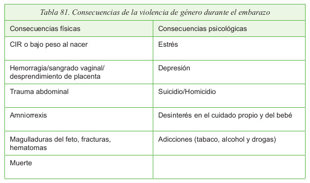 La OMS manifiesta que la violencia ejercida por la pareja es la forma de violencia más común, más que incluso por extraños, y puede ser violencia física, psicológica y sexual. La violencia de género afecta a nivel físico y psicológico (Tabla 81).