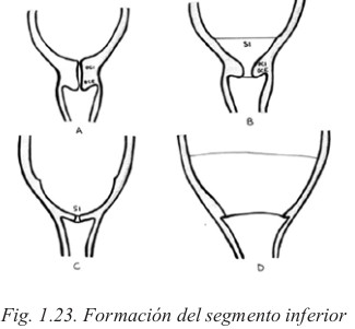 - Segmento inferior: está situado a la mitad y es un canalizador de la fuerza uterina en sentido descendente. Carece prácticamente de fuerza contráctil en sí mismo, pero permite acomodar, fijar y dirigir la presentación fetal por sus características morfológicas e histológicas particulares.