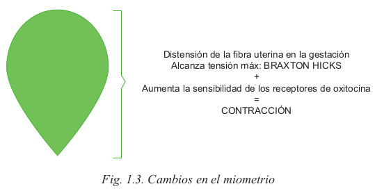 Los cambios uterinos que acontecen en el embarazo y el parto tienen dos objetivos: albergar el crecimiento del feto en su interior y por otro lado provocar unas contracciones vigorosas que permitan la expulsión de feto y anejos al exterior en el momento del parto.