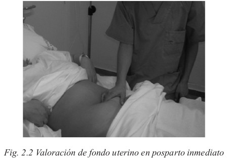 El útero permanece a nivel del ombligo alrededor de un día, y luego cada día posterior del puerperio desciende a la pelvis una distancia aproximada de un través de dedo.