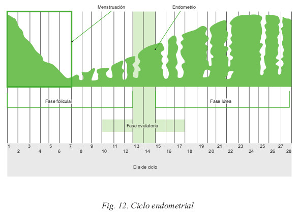 - Endometrio: capa mucosa que recubre el cuerpo uterino, esta mucosa responde con cambios morfológicos importantes a los estímulos hormonales del ovario y posee la curiosa propiedad de descamarse periódicamente cada 28 días, aunque la zona necrosada se regenera rápidamente.
