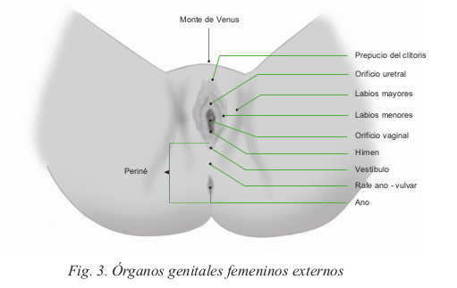 Se designa así al conjunto de órganos ubicados debajo de la pared abdominal anterior, en el perineo anterior, por delante del ano, por dentro y arriba de la cara medial de los muslos. Coronada por el monte del pubis (de Venus), la vulva, las formaciones labiales, el aparato eréctil y las glándulas anexas.
