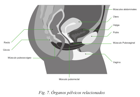 - La capa externa, formada por la fascia vaginal, a través de la cual la vagina se relaciona por delante con la uretra y con la porción inferior de la vejiga urinaria, y por detrás con el recto y el peritoneo que recubre la porción más inferior de la cavidad pelviana.