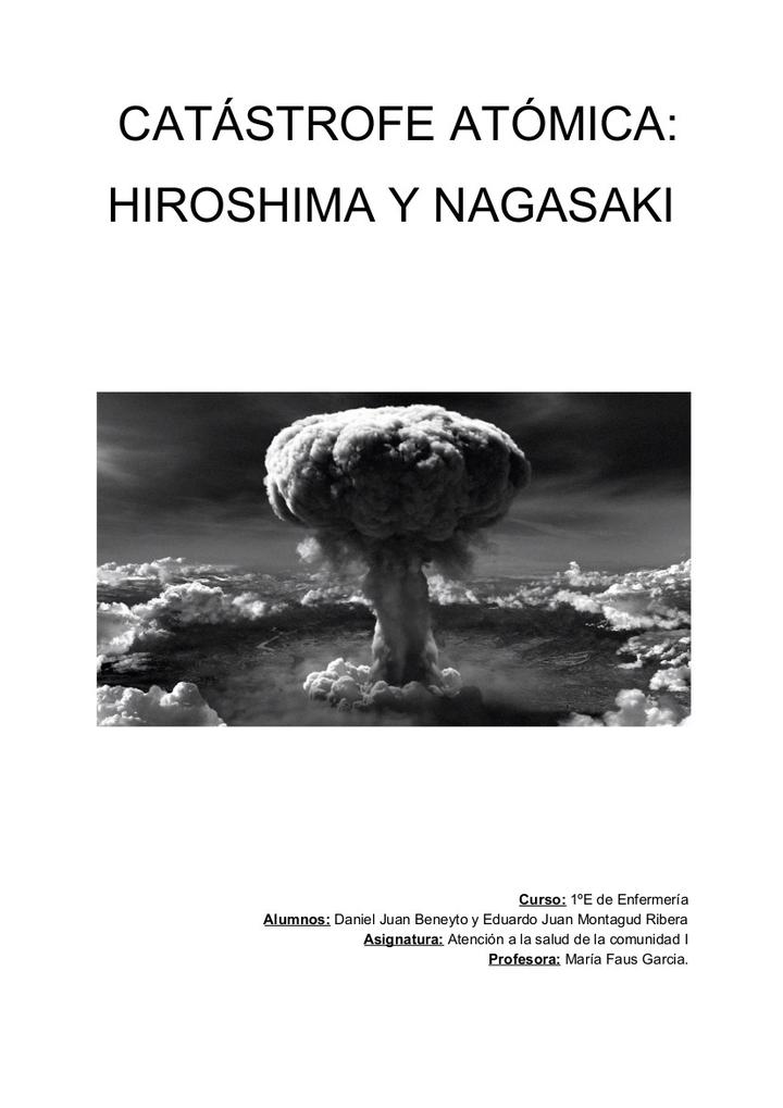 Este trabajo sobre las catástrofes ambientales, climáticas, químicas etc. está relacionado con la asignatura de atención a la salud de la comunidad I porque muestra el estudio estadístico de algunos aspectos interesantes como: el cálculo de las tasas de mortalidad junto con todos los porcentajes de números de víctimas fallecidas, los que sobrevivieron y las enfermedades que sufrieron las personas de dichas ciudades y las de un radio próximo de exposición a esta devastadora catástrofe, debido a la radiación química que contenían dichas bombas.