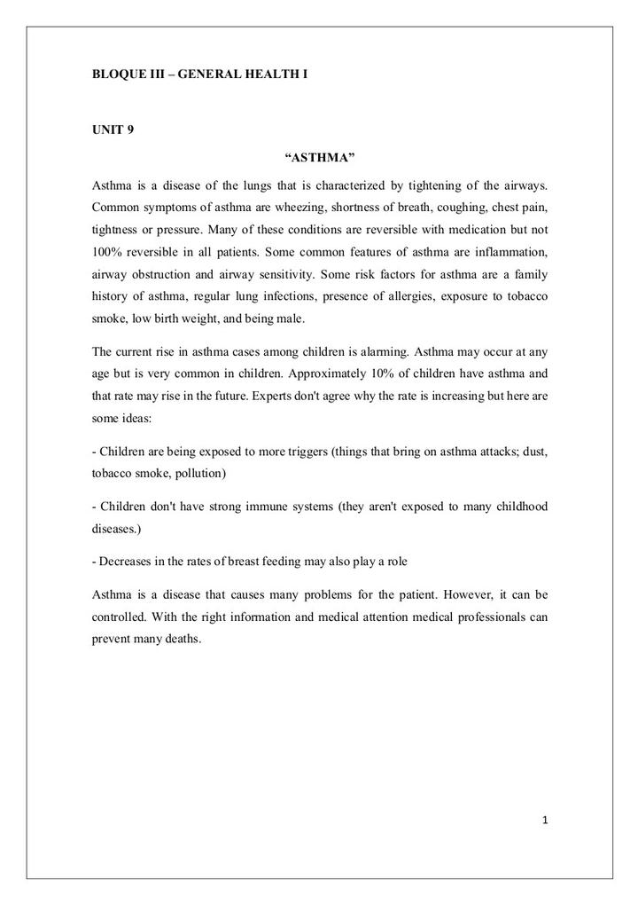Apuntes de Inglés Sanitario. Bloque 3.