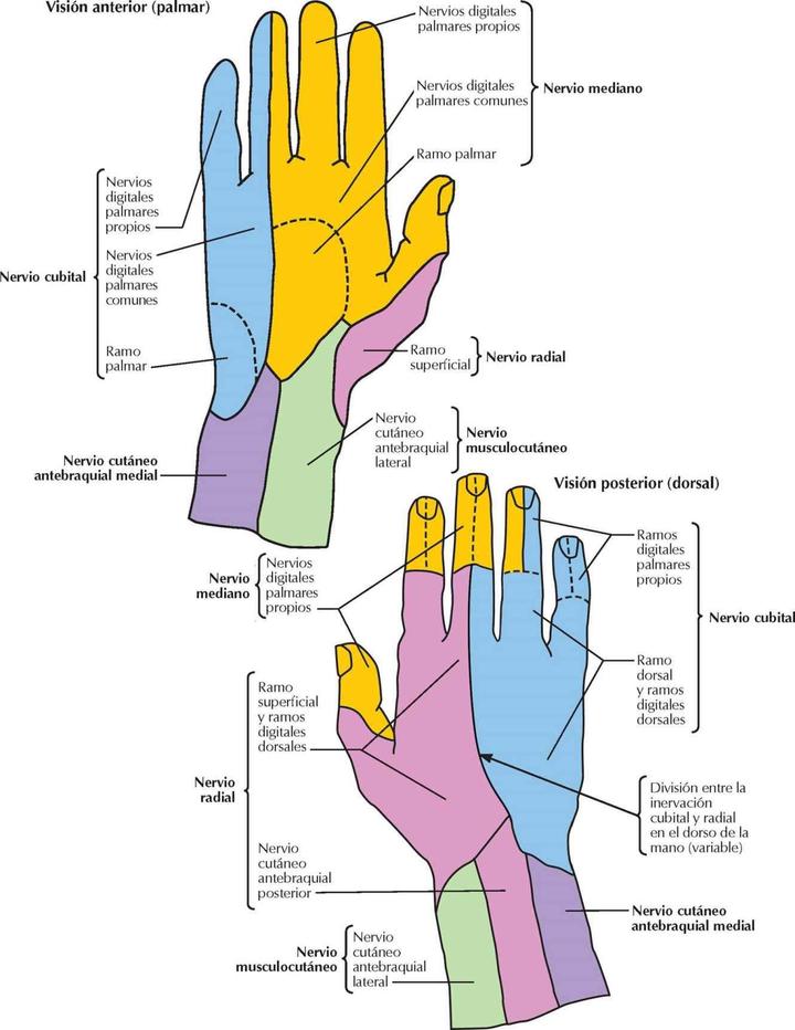 Diapositivas de la inervación y la vasculatura del miembro superior (inervación cutánea del carpo y de la mano, arterias y nervios del miembro superior, nervio musculocutáneo, nervio mediano, nervio cubital, nervio radial, …)