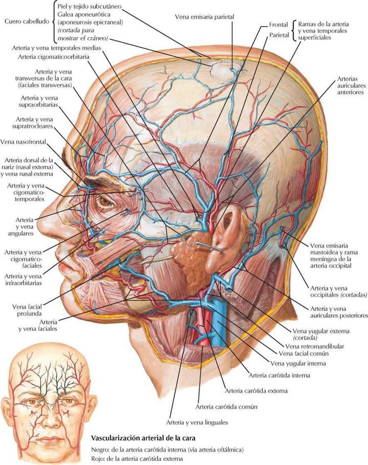 - Arterias y venas superficiales de la cara y cuero cabelludo