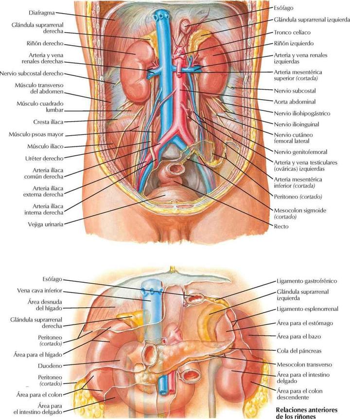 Diapositivas de los riñones y las glándulas suprarrenales (arteria y vena renales, arterias intrarrenales, uréteres en abdomen y pelvis, arterias de los uréteres y vejiga urinaria, fascia renal, vasos y ganglios linfáticos, vejiga urinaria, nervios autónomos, inervación autónoma de los riñones, arterias y venas de las glándulas suprarrenales, …).
